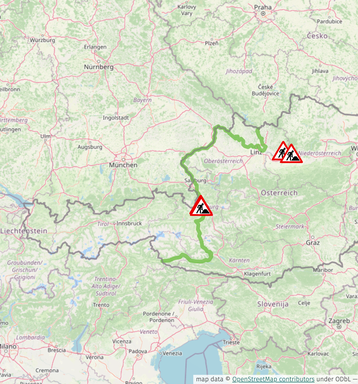 Ze Salcburku probíhá EuroVelo 7 paralelně s cyklotrasou Alpe-Adria, jež využívá i nově postavený tunel pod Alpami, který vám ušetří horská stoupání. Krátké úseky na Glocknerské trase (R8) musíte ale beztak vyšlápnout až k mostu Möllbrücke na řece Drávě, kde se napojíte na Drávskou stezku (R1) v Korutanech a dojedete až k italským hranicím u městečka Sillian. EuroVelo 7 je prozatím značena logem EV7 pouze v Salcbursku.