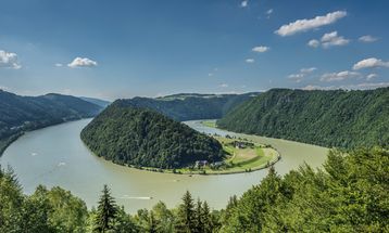 Donauradweg Passau–Bécs Klasszik: ikonikus útvonal a Schlögener-kanyar, Strudengau, Nibelungengau és Wachau tájain. Kényelmes tekerés a folyó mentén szőlők, gyümölcsösök és ártéri rétek között. Történelem, gasztronómia, képeslap-panorámák.
